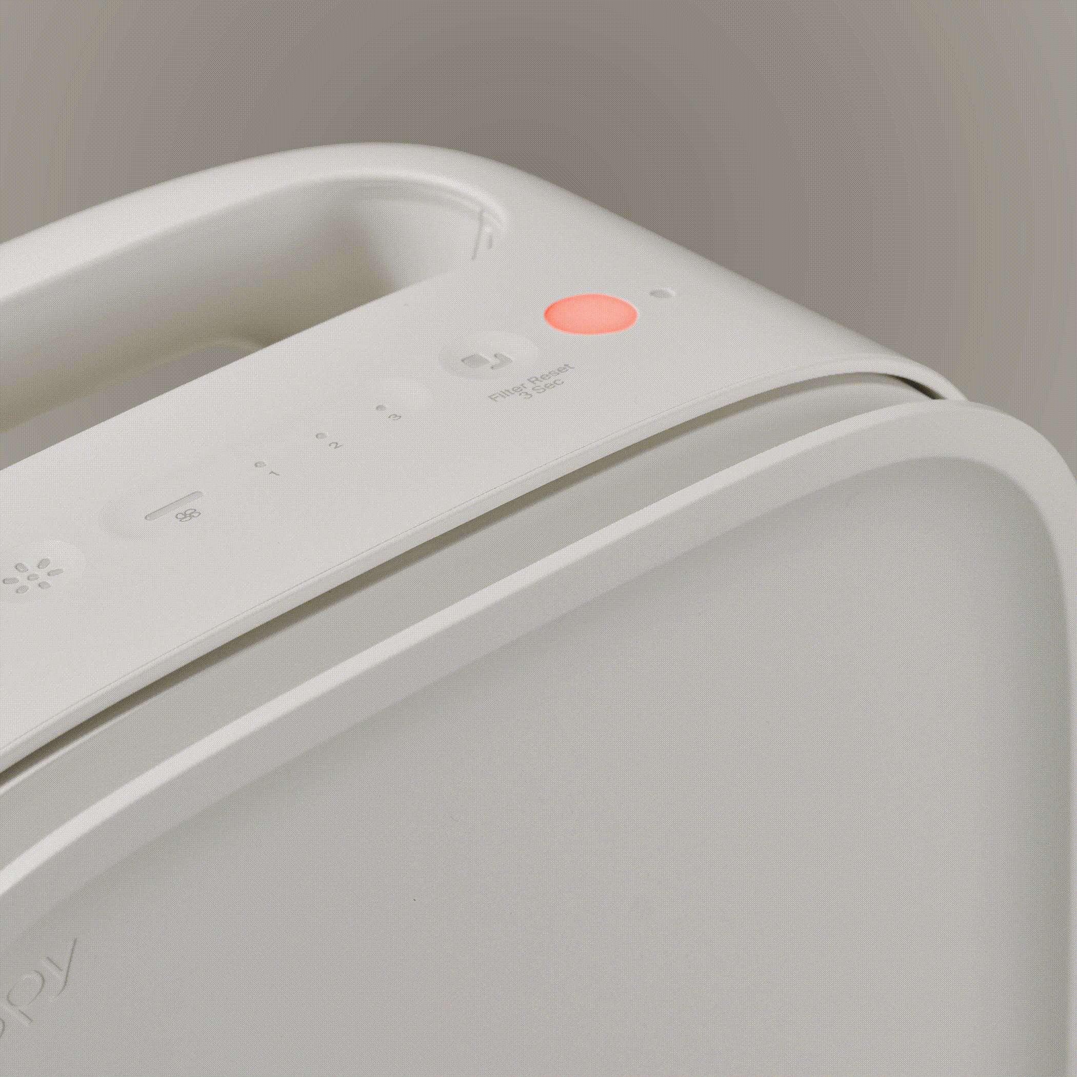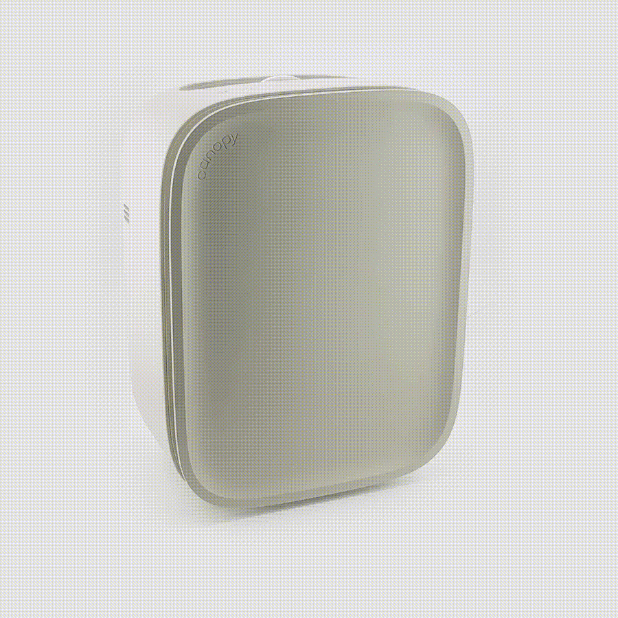Air enters the Canopy Air Purifier through the sides of the unit, around the faceplate, and passes through a multi-stage filter that helps capture airborne particles.